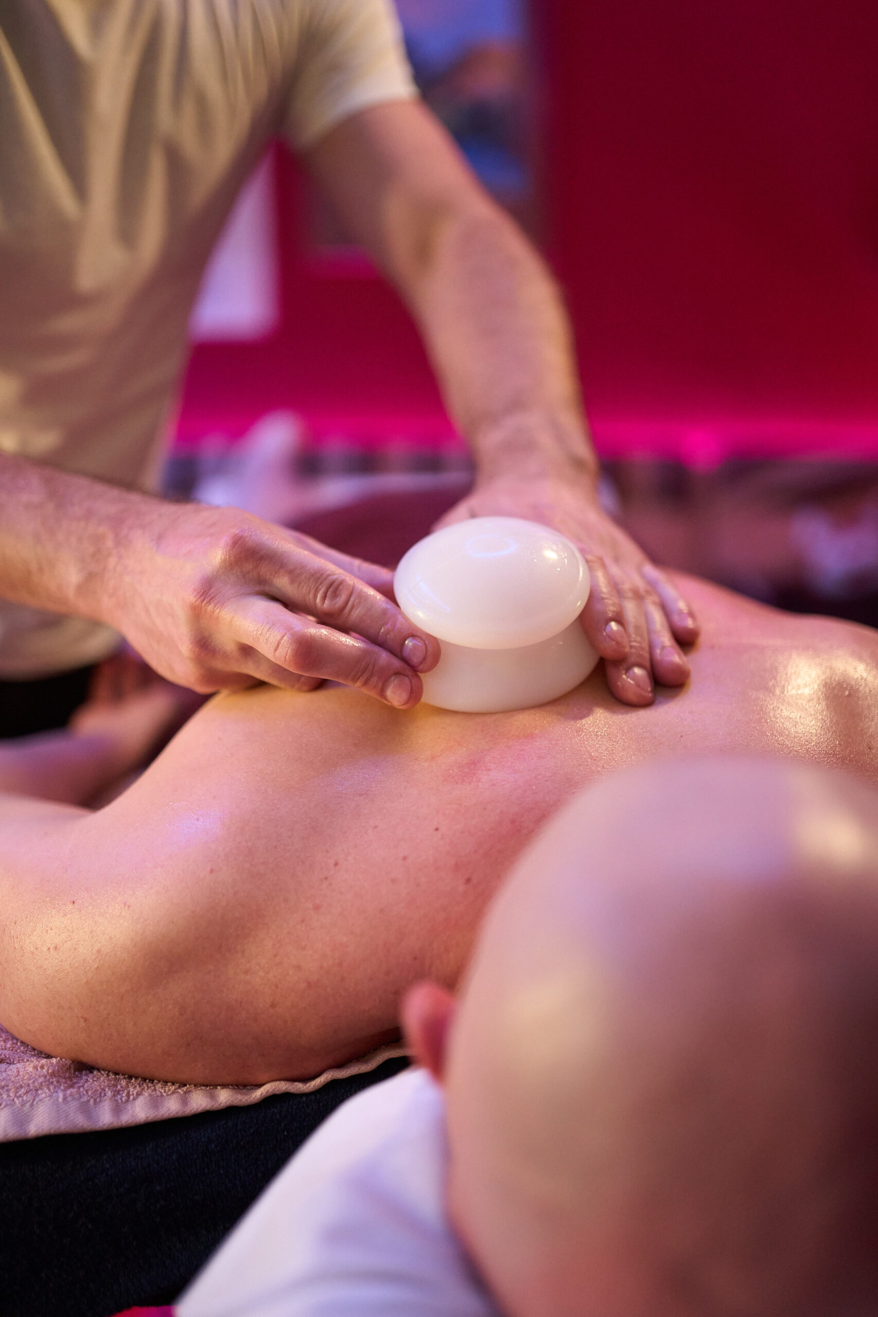 Wykonuję masaże manualne z wykorzystaniem ciepłych, aromatycznych olejków, a także masaż bańką chińską – tonizujący i ujędrniający skórę oraz rozgrzewający i głęboko relaksujący – masaż gorącymi kamieniami .